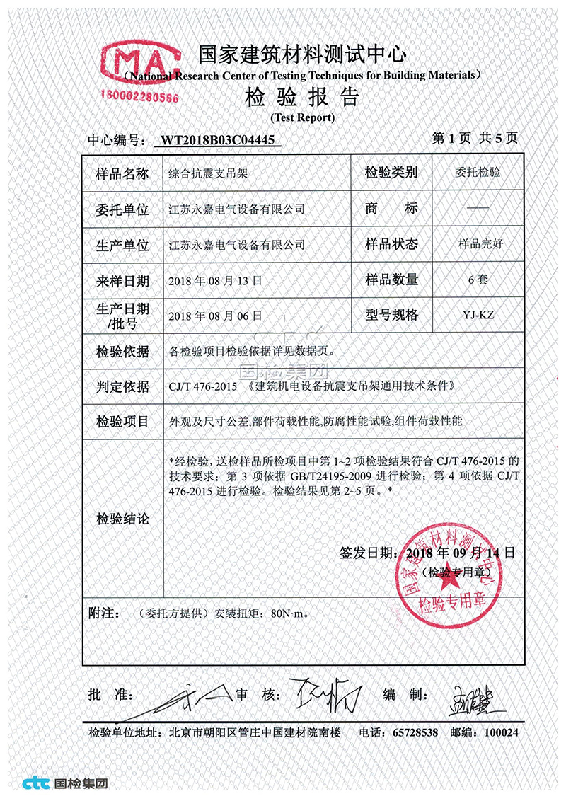 综合抗震支架检验报告